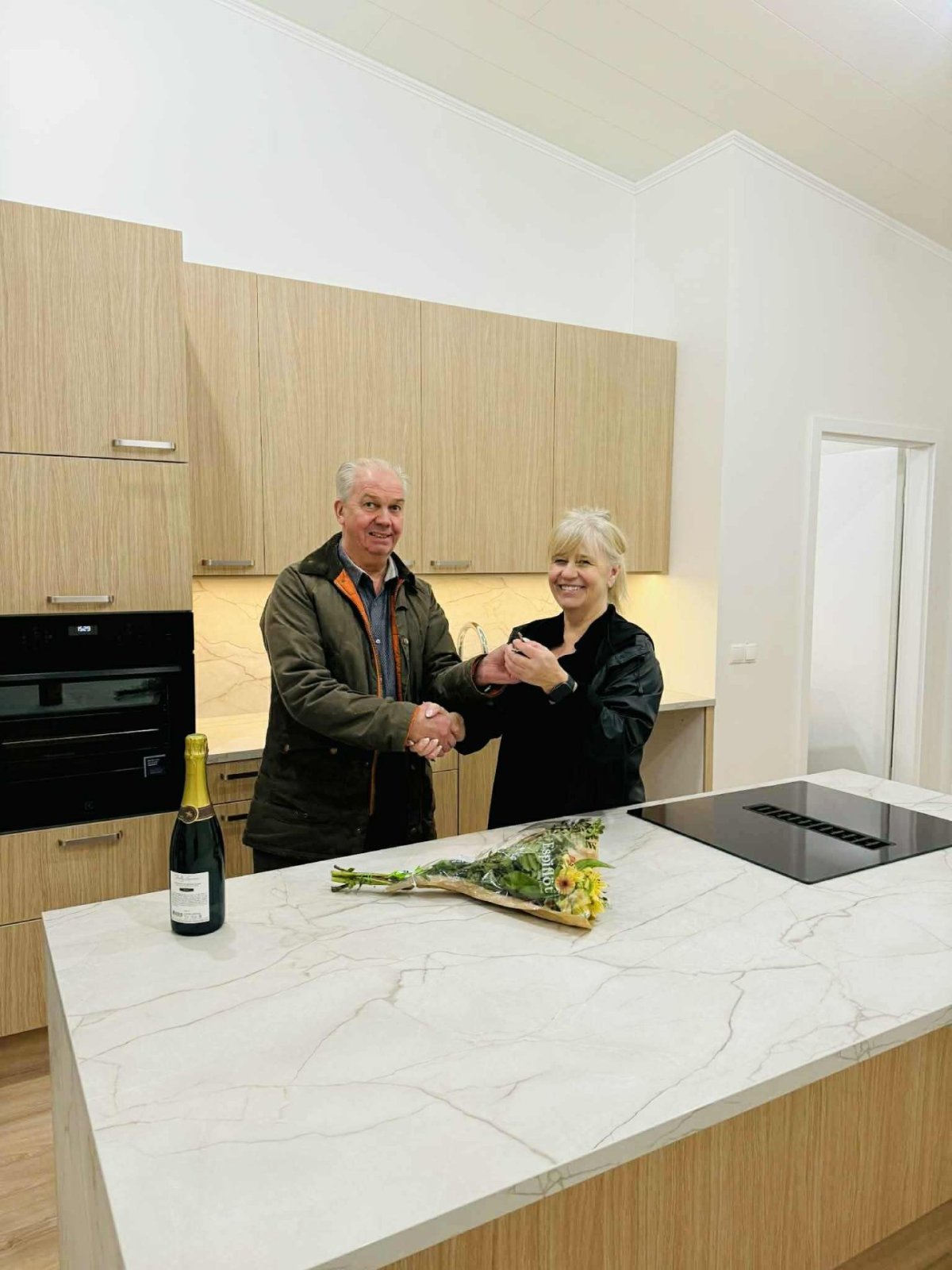 Á föstudaginn fögnuðum við ánægjulegum tímamótum þegar fyrsta íbúðin við Breiðamel var formlega afhent nýjum eiganda. Fyrsta skóflustungan var tekin 11. júlí í fyrra og styttist nú í að næstu íbúðir verði tilbúnar. Við erum afar stolt af okkar framlagi og þökkum öllum þeim sem komu að verkefninu á einn eða annan hátt fyrir frábært samstarf. Við óskum Ingu til hamingju með nýju íbúðina.